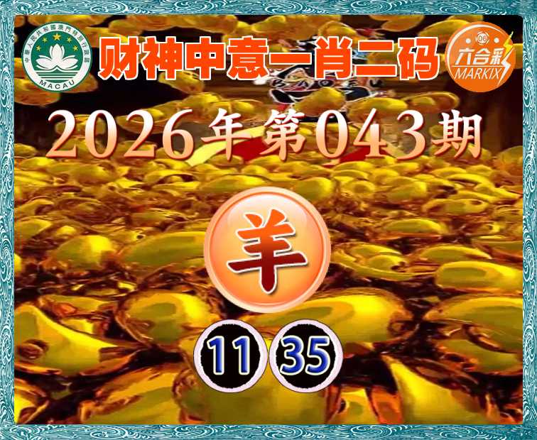 043期:『财神中意』 一肖二码【羊】【11.35】开:蛇13
