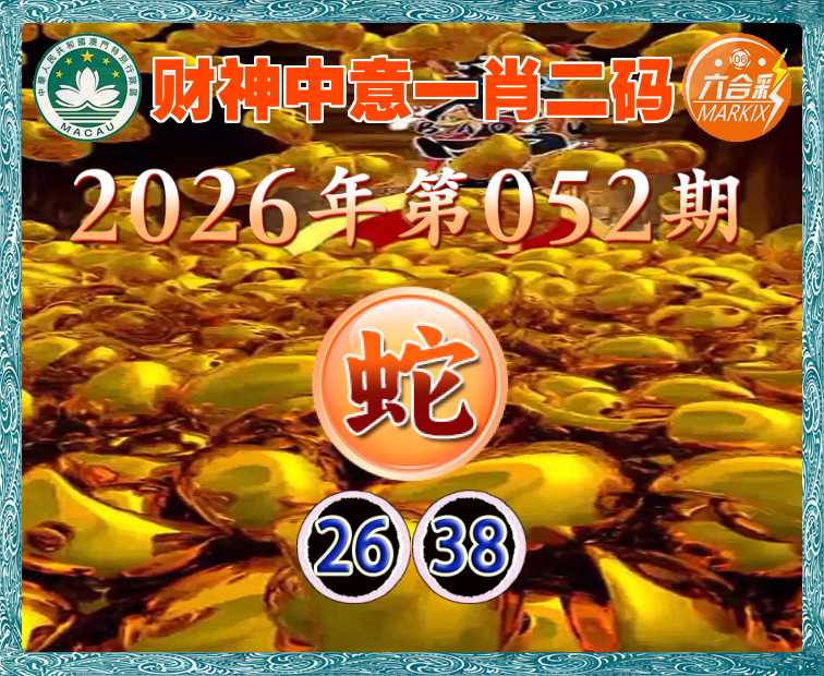 052期:『财神中意』 一肖二码】【26.38】开:蛇38